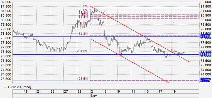 Покупка: нет. Кто в позиции от 76300, держите стоп на 75840.