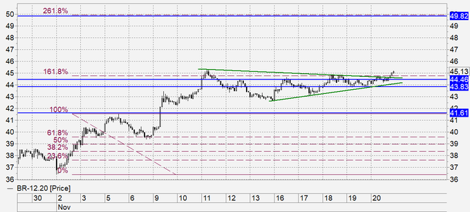 Скорее всего мы успеем дойти до района 50.00 к 1-му декабря. В случае если ОПЕК продолжит вести себя также скромно, как и сейчас, то мы увидим откат в район 46.00.