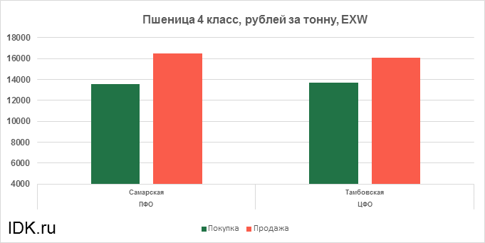 За прошедшую неделю с 16.11.2020 по 20.11.2020 средняя цена на пшеницу 4-го класса, согласно выставленным заявкам трейдеров, выросла по всем округам на 3 рубля. Средняя цена составляет 14955 рублей за тонну.