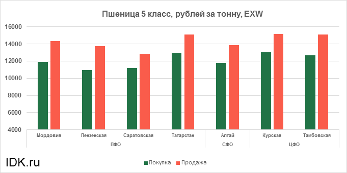 За прошедшую неделю с 16.11.2020 по 20.11.2020 средняя цена на пшеницу 5-го класса, согласно выставленным заявкам трейдеров, выросла по всем округам на 206 рублей. Средняя цена составляет 13184 рубля за тонну.
