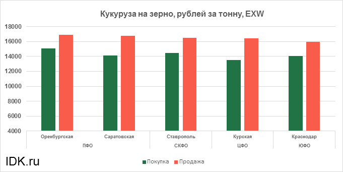 За прошедшую неделю с 16.11.2020 по 20.11.2020 средняя цена кукурузы на зерно, согласно выставленным заявкам трейдеров, упала по всем округам на 393 рубля. Средняя цена составляет 15295 рублей за тонну.