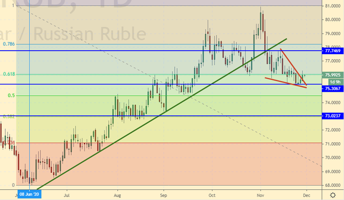 1-го декабря вечером мы должны узнать о перспективах сотрудничества стран ОПЕК+. Скорее всего, соглашение о сокращении добычи будет продлено на следующие три месяца. Если говорить о сроке в полгода, то здесь не всё так однозначно. Вряд ли те же арабские Эмираты будут пролонгировать собственные обязательства дольше чем на первый квартал.