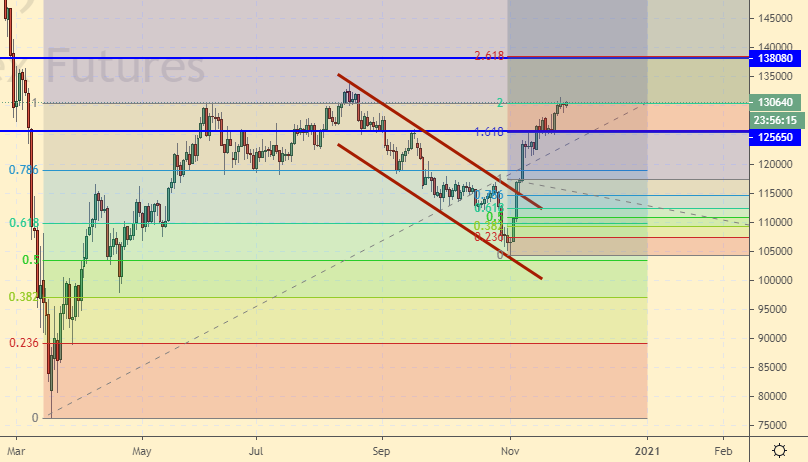Сценарий падения: если мы застрянем в районе 130000, это может стать поводом для распродаж, особенно на фоне возможного падения цен на нефть. Здесь можно войти в шорт с небольшим риском.