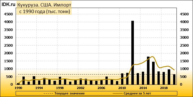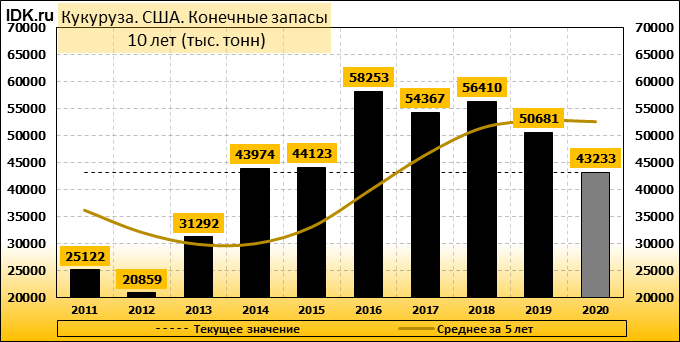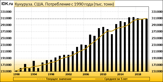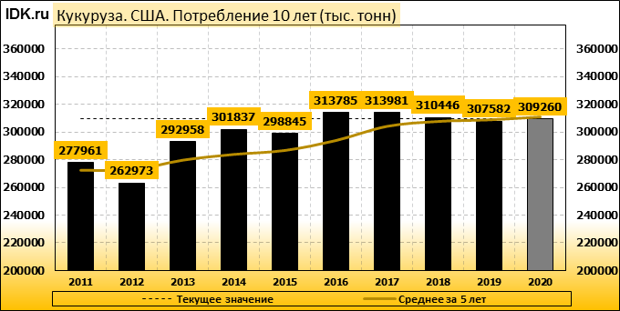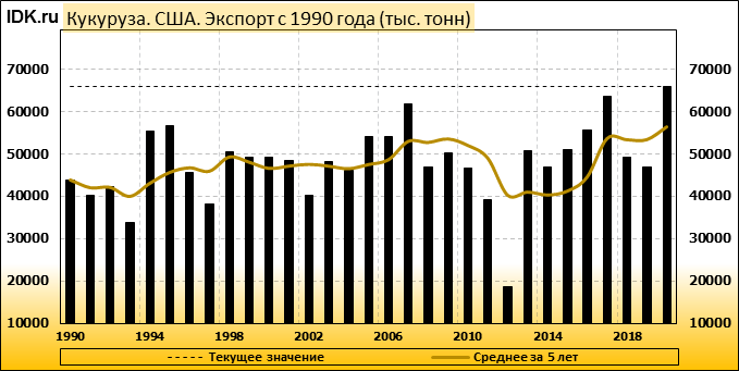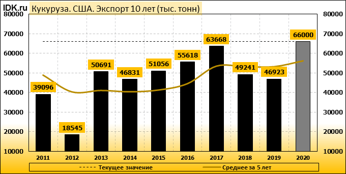 В этом месяце Министерство Сельского хозяйства США оставило прогноз по кукурузе в США на 2020/21 год без изменений. Производство кукурузы прогнозируется на уровне 14,507 миллиардов бушелей (368,49 млн. тонн). Это на 22,53 млн. тонн или 6,51 процента больше, чем было произведено в прошлом году. Экспорт кукурузы ожидается на уровне 66 млн. тонн, что в случае реализации прогноза станет рекордным показателем. Для сравнения в 2019/20 году США экспортировали 46,92 млн. тонн кукурузы.