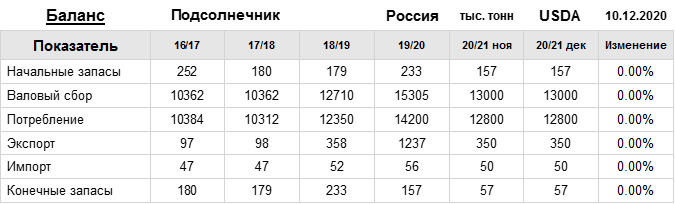 Смотрите также баланс по подсолнечнику на 16 декабря 2020 по Украине