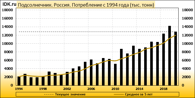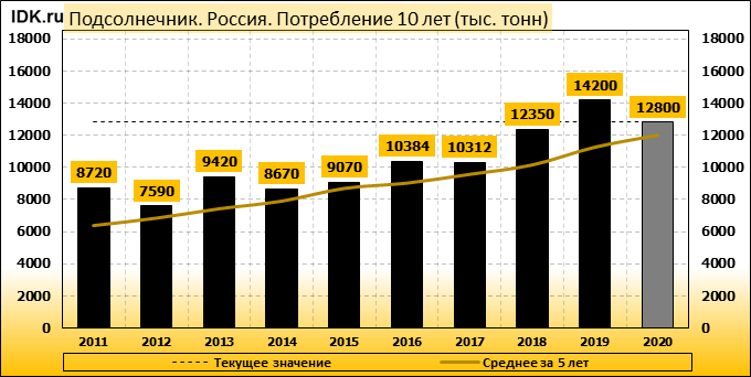 Потребление: показатель не изменился и составляет 12800 тысяч тонн.