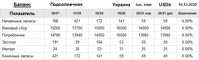 Смотрите также баланс по подсолнечнику на 16 декабря 2020 по ЕС