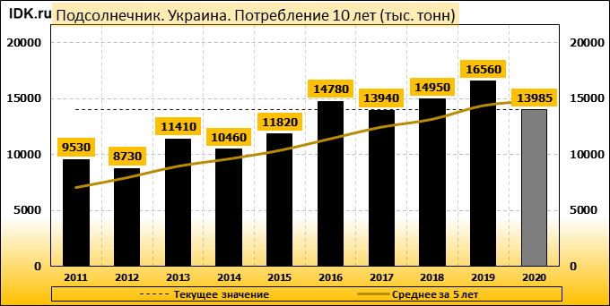 Потребление: показатель не изменился и составляет 13985 тысяч тонн.