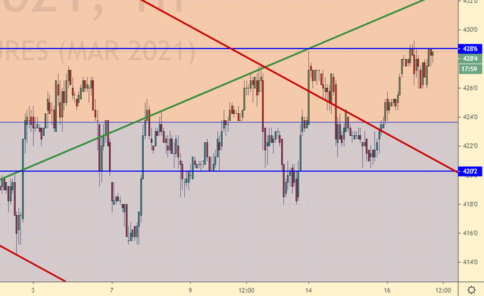Продажа: нет. Кто в позиции от 424.0 и 427.0, перенесите стоп на 430.2. Цель: 390.0.