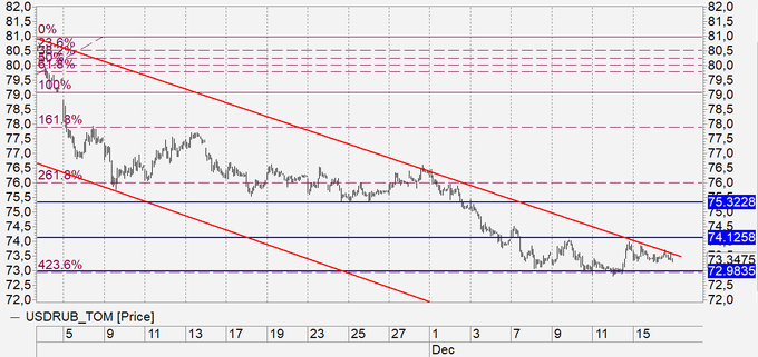 Продажа: при касании 72.70. Стоп: 73.70. Цель: 71.50.