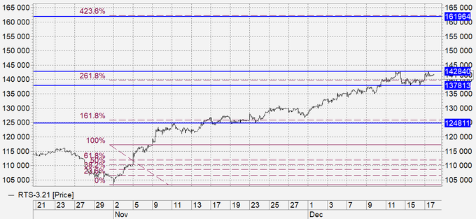 Быки забрались очень высоко. Попытку закрепиться выше 140000 на данный момент мы можем признать удачной. Столь откровенная упертость заставляет нас рассуждать о возможности хода к 160000. Для того чтобы такое движение стало реальным доллар должен продолжать падать, а Россия в глазах трейдеров должна стать тем местом, где можно в данный момент заработать денег. Так как идеи на внутреннем рынке США закончились, действительно можно ожидать кратковременного притока средств на ММВБ.