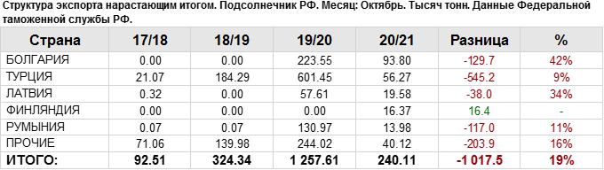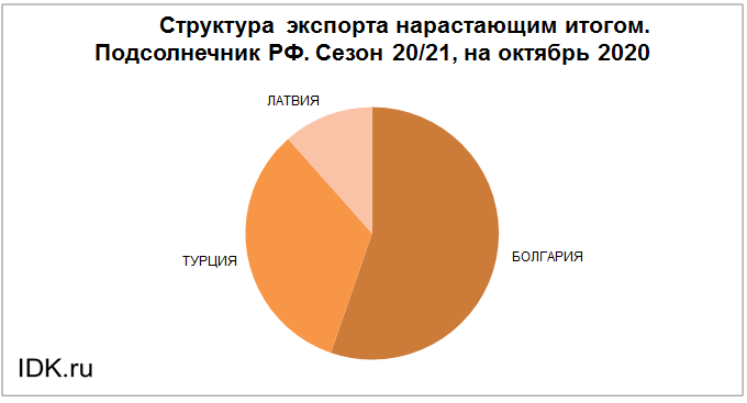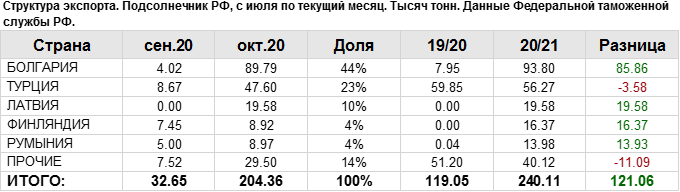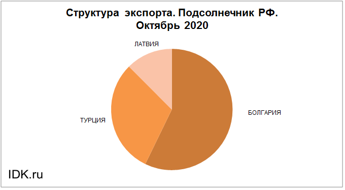 Структура экспорта подсолнечника из России за октябрь 2020 года