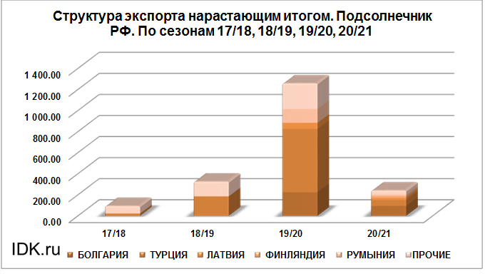 Структура экспорта подсолнечника из России нарастающим итогом по сезонам