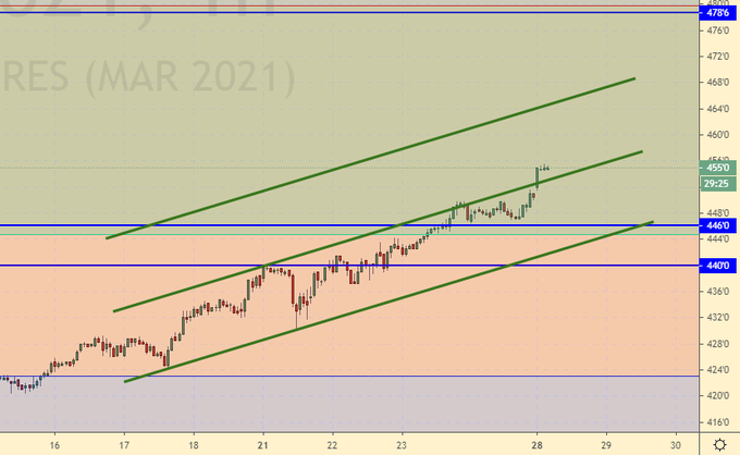 Рынок агрессивно растет. Держим лонги. В откат с текущих уровней не верим. Ждем прибытия к 480.0, после чего будем думать о фиксации прибыли и о шортах.