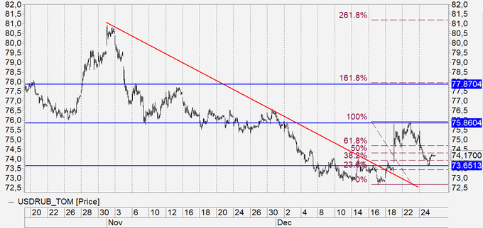 Вряд ли сегодня мы увидим укрепление рубля. Технически уровни хороши для покупок, из-за этого на рынок придет немало покупателей, что будет двигать пару вверх.