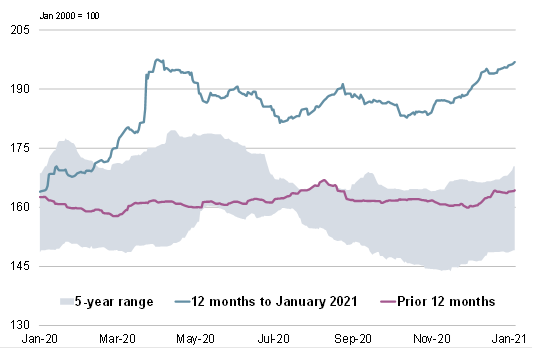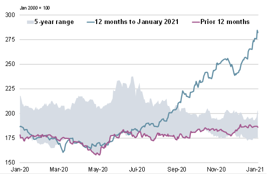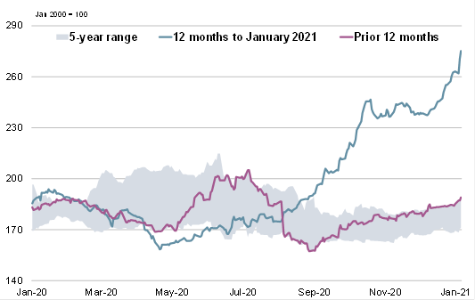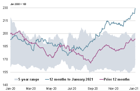 С конца ноября мировые экспортные цены продолжали расти. Благодаря устойчивому росту на рынках кукурузы и сои, индекс GOI IGC поднялся на 10%, до самого высокого уровня с июля 2013 года.