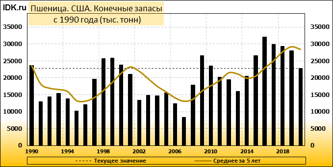 Конечные запасы: составят 22755 тысяч тонн. Оценка с последнего отчета снизилась на -2.98 процента.