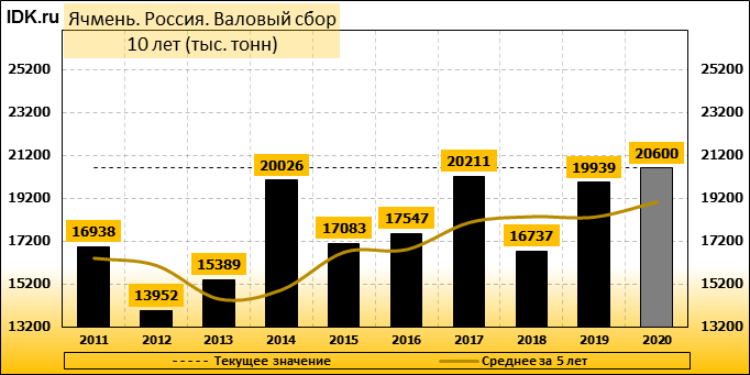 Валовый сбор: оценка не изменилась и составляет 20600 тысяч тонн.
