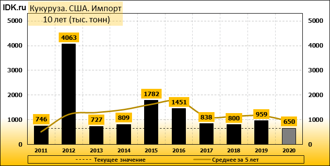 Импорт: составит 650 тысяч тонн. Значение по прошествии месяца не изменилось.