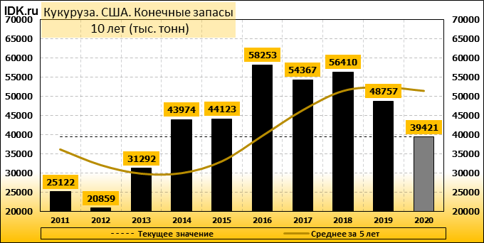 Конечные запасы: составят 39421 тысячу тонн. Оценка с последнего отчета снизилась на -8.82 процента.