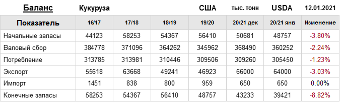 Смотрите также баланс по кукурузе на 15 января 2021 по России