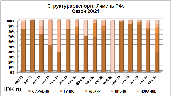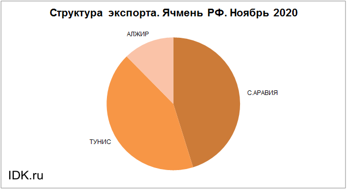 Структура экспорта ячменя из России за ноябрь 2020 года