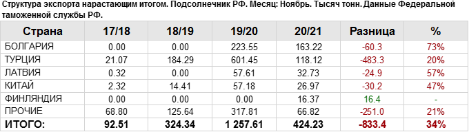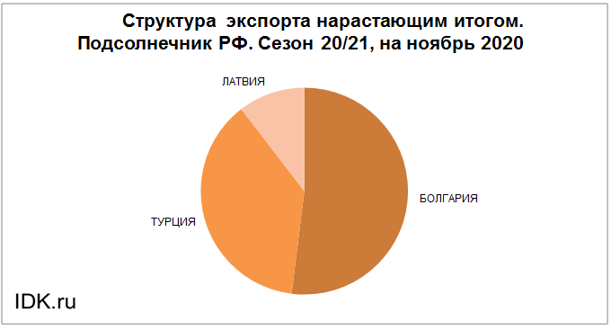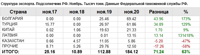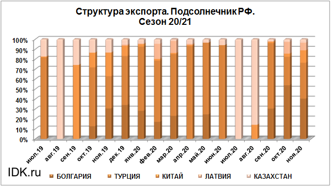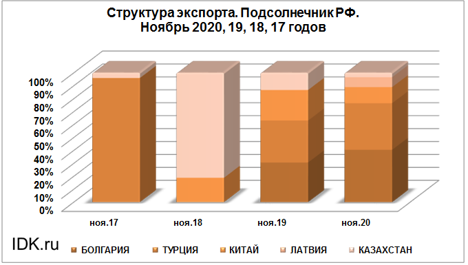 Структура экспорта подсолнечника из России за ноябрь 2020 года