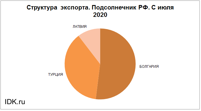 Структура экспорта подсолнечника из России с июля 2020