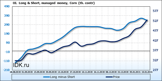 Смотрим на объемы открытого интереса управляющих. Вы должны учитывать, что это данные трехдневной давности (за вторник прошедшей недели), они же и самые последние из тех, что публикует биржа ICE.
