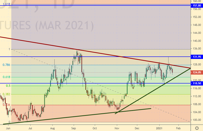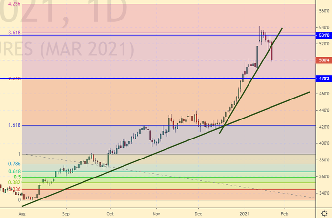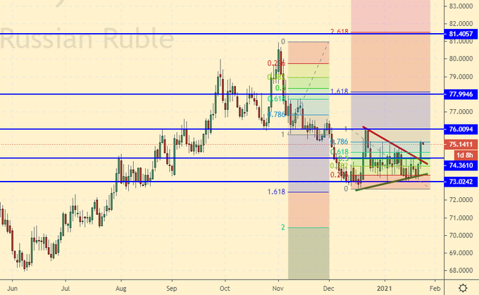 Обращает на себя внимание два последовательных сильных удара по рублю утром в четверг и пятницу, сразу после инаугурации Байдена. Что это такое? Сговор? Конечно да. Ведь никаких статистических данных или новостей по утрам не бывает, реагировать не на что. Все только встали с кровати и надели мягкие тапочки.