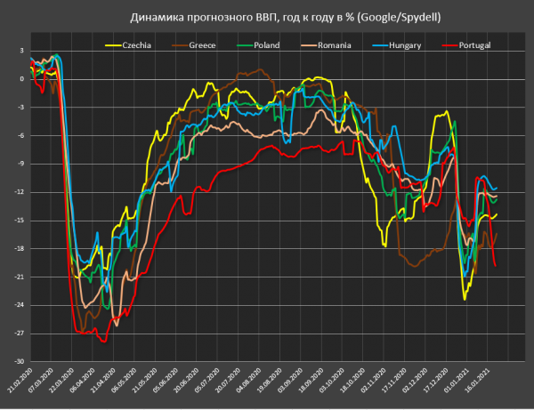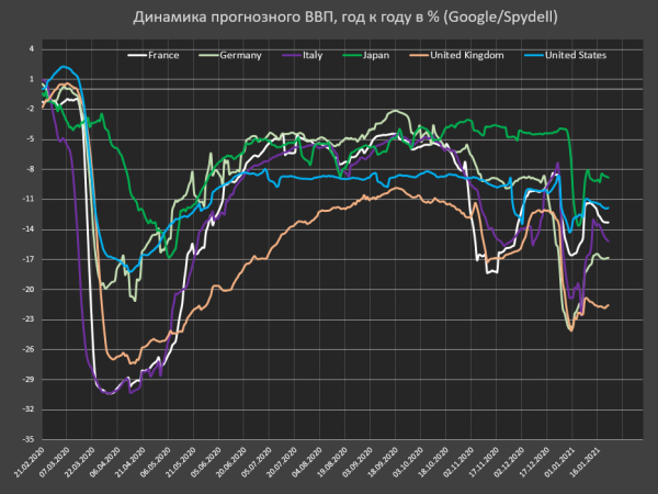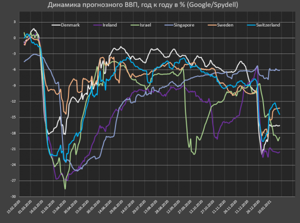 Что здесь самое интересное? Достаточно синхронное ужесточение в конце декабря на фоне программ вакцинации, что должно было бы наоборот развязать руки и освободить экономику от принудительного суицида.