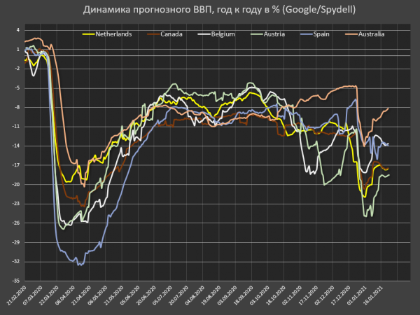 Австрия и Нидерланды в три фазы погружаются в тьму Lockdown и сейчас наиболее жесткие меры, чем когда-либо для указанных стран. Сильно закрыта Канада.