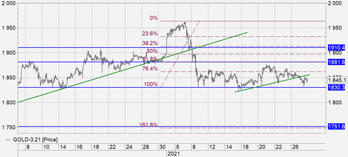Пауэлл был мягок, как и всегда, но голову пеплом не посыпал, и даже выразил готовность бороться пандемией. То есть всё не так и плохо. И мы, мол, на верном пути, товарищи. В результате видим, что золото на волне «everything under control» на смогло удержаться выше 1850. И пока нам ничто не мешает рассуждать о снижении к 1750.