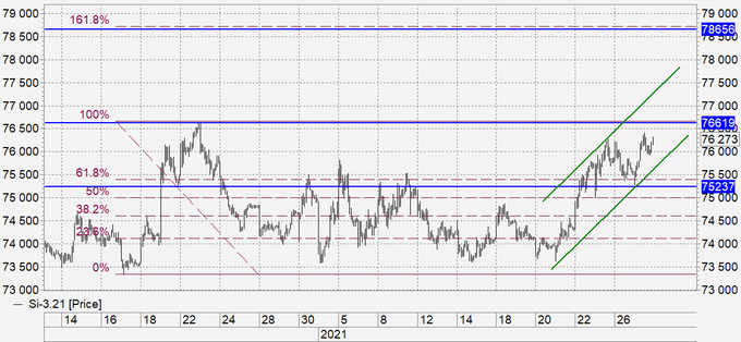 Покупка: нет. Кто в позиции от 73900, 74300 и 75000, перенесите стоп на 74800. Цель: 82000.