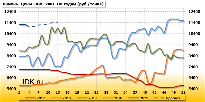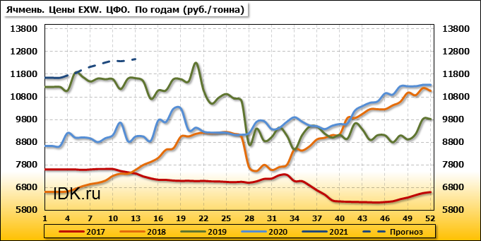 За прошедшую неделю в Центральном федеральном округе внутренние цены на ячмень выросли на 103 руб./т. и на данный момент составляют 11751 рубль за тонну.