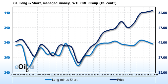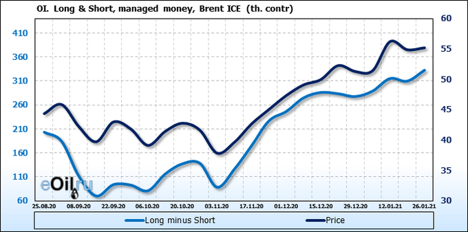 Смотрим на объемы открытого интереса управляющих. Вы должны учитывать, что это данные трехдневной давности (за вторник прошедшей недели), они же и самые последние из тех, что публикует биржа ICE.