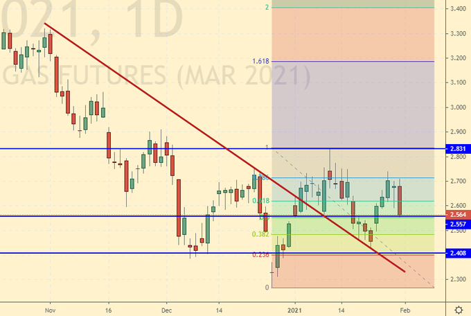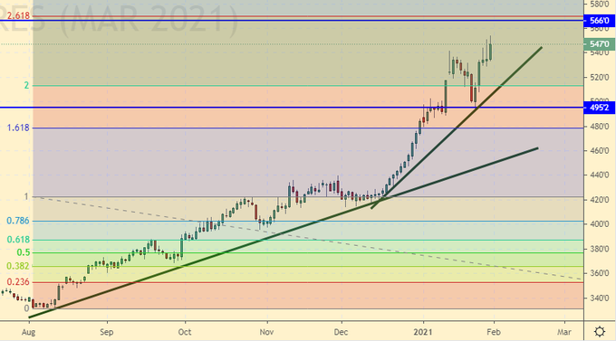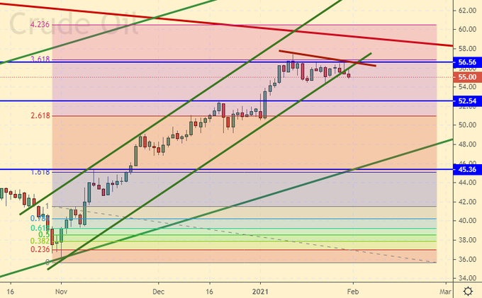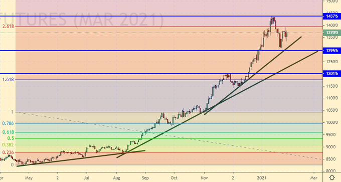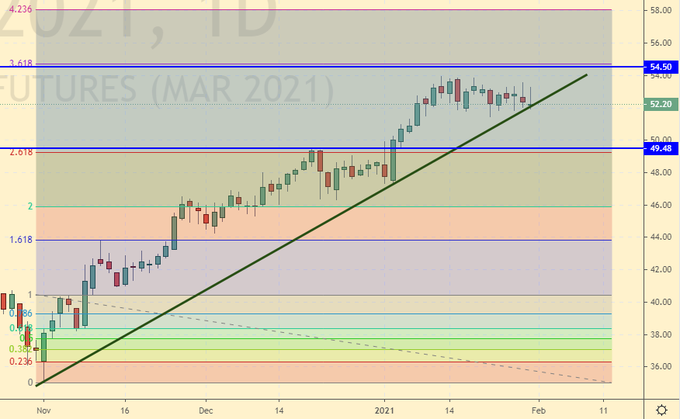 Быки конечно могут рассчитывать на то, что Байден поклонник «зеленых» технологий, и процедура получения лицензий на добычу нефти через пару месяцев будет усложнена, однако, в Саудовской Аравии проблем на получение лицензий на добычу нефти нет. Государства Аравийского полуострова с удовольствием возместят потенциальные 3 – 4 млн. баррелей в сутки, от которых добровольно откажется Вашингтон. Всё станет также как было при Обаме: выручка от нефти будет направляться арабами на покупку оружия в США.