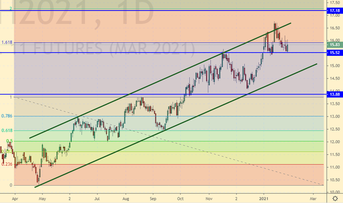 Сценарий роста: заседание ФРС прошло, но так ничего и не случилось. Зато на рынке серебра пользователи американской сети Reddit взялись хулиганить по крупному, рассчитывая раскачать «золото для нищих» до… да по сути до небес. Этот акт со стороны мелких инвесторов может повлиять и на рынок золота. Будем покупать, впрочем, как и неделей ранее.