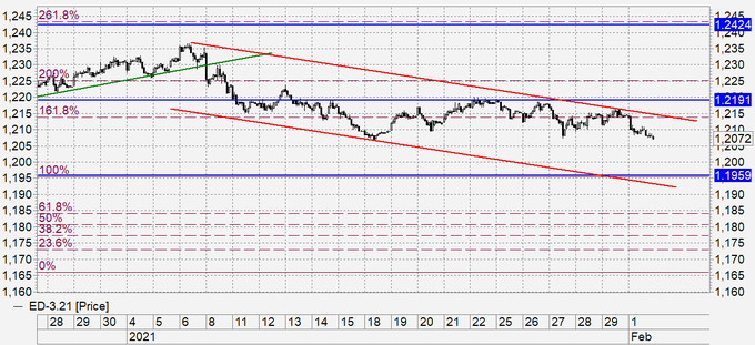 На торгах в Азии пара незначительно восстанавливается после вечернего падения. Пока смотрим вниз. Цены внутри падающего канала. В случае роста рынка выше 1.2150 картинка может стать бычьей. А пока продолжаем считать, что мы способны пройти к 1.2000, возможно и ниже.