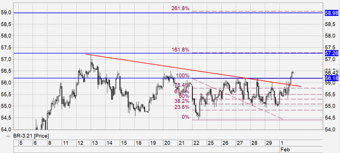 Вчера вечером нефть преодолела уровень 56.00 и взяла курс на 59.00. Видим, что участники торгов позитивно оценивают стремление ОПЕК контролировать предложение на рынке. Кроме того, не осталось без внимания и заявление Байдена по поводу существенного затруднения для компаний на получение лицензий для добычи.