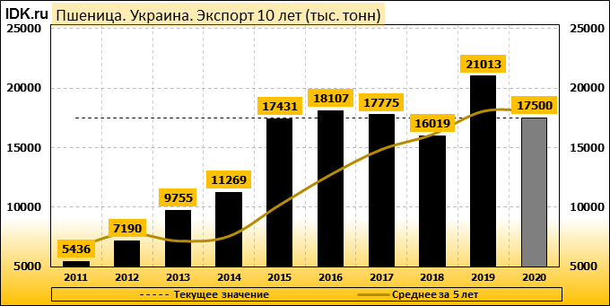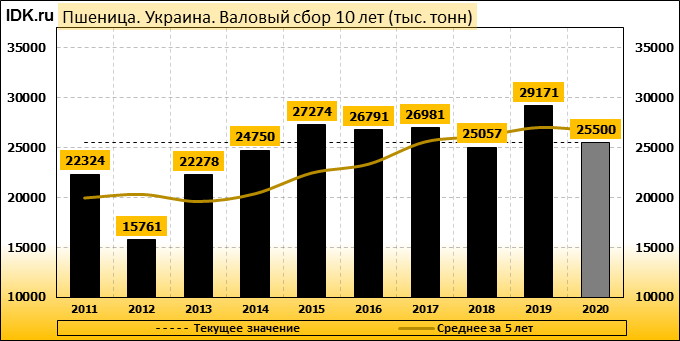Прогноз производства пшеницы в Украине в 2020/21 году не изменился с прошлого месяца и составляет 25,5 миллиона метрических тонн, что на 3,67 млн. тонн или 12,58 процентов меньше, чем было произведено в прошлом году. Оценки урожайности и уборочной площади также не изменились по сравнению с прошлым месяцем. Урожайность оценивается в 3,75 тонны с гектара, уборочная площадь — в 6,8 миллиона гектаров, что на 3 процента меньше, чем в прошлом году. Прогноз по экспорту пшеницы из Украины в 2020/21 году остался без изменений и составляет 17,5 млн. тонн.