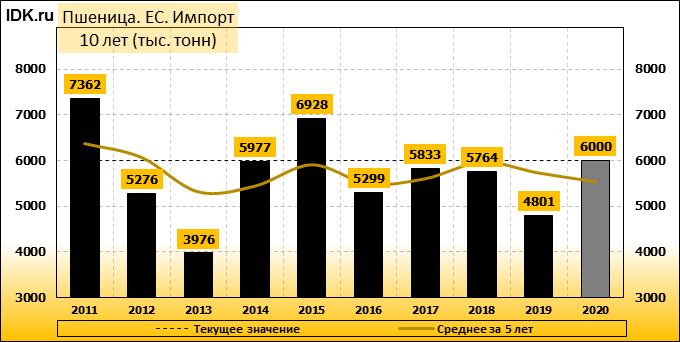 Импорт: составит 6000 тысяч тонн. Значение по прошествии месяца не изменилось.