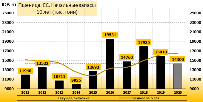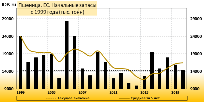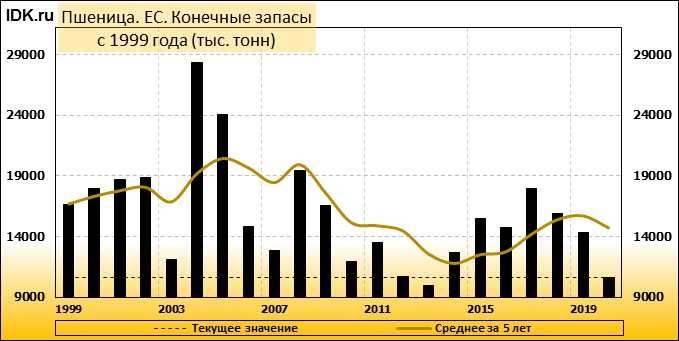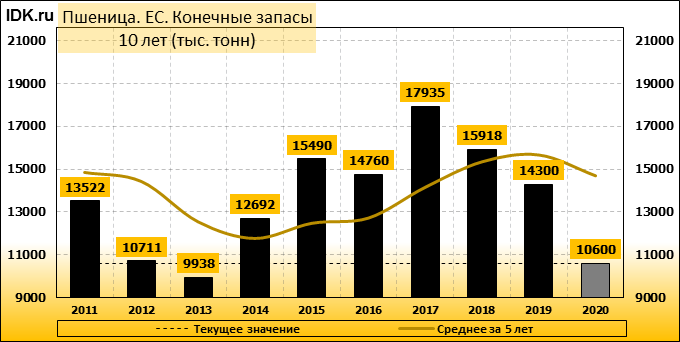 Конечные запасы: составят 10600 тысяч тонн. Оценка с последнего отчета снизилась на -4.5 процента.