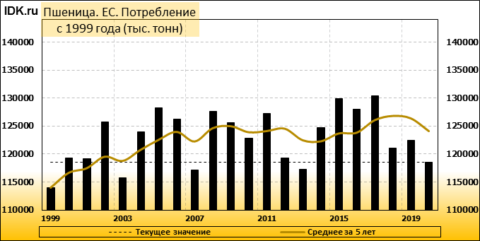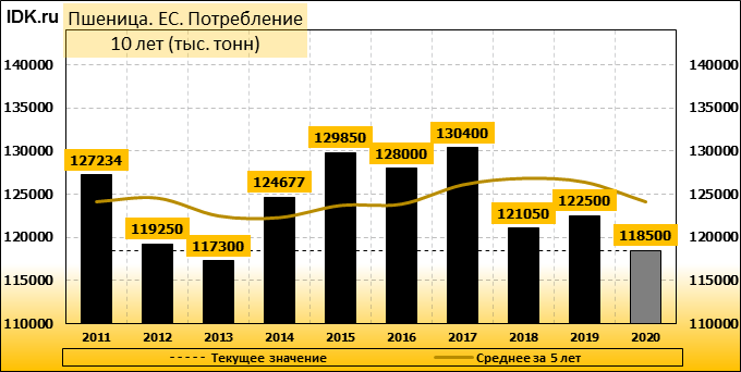 Потребление: показатель не изменился и составляет 118500 тысяч тонн.