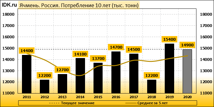 Потребление: показатель не изменился и составляет 14900 тысяч тонн.