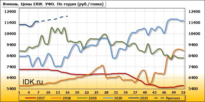 Внутренние цены на ячмень в Уральском федеральном округе выросли на 387 руб./т. и на данный момент составляют 11512 рублей за тонну.