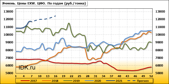 За прошедшую неделю в Центральном федеральном округе внутренние цены на ячмень выросли на 507 руб./т. и на данный момент составляют 12511 рублей за тонну.
