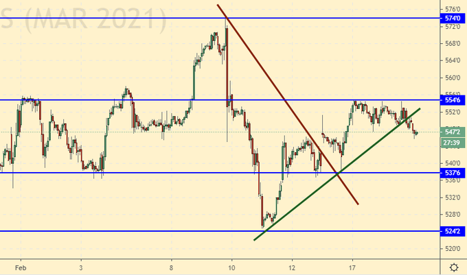 Рынок на фоне холодной погоды в США пытается расти, но не может. Как мы и предполагали, перед нами широкий диапазон. Кукуруза не поддерживает попытки пшеницы пройти выше, поэтому, пока по рынку будем смотреть вниз.