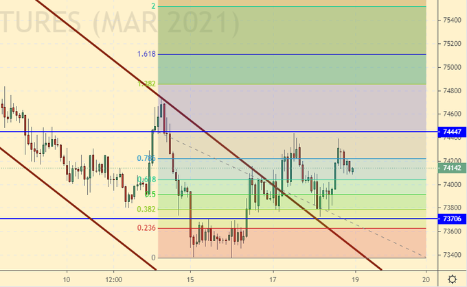 Покупка: нет. Кто в позиции от 74.05, перенесите стоп на 73.60. Цель: 80.00. После роста выше 74.25 можно добавить.