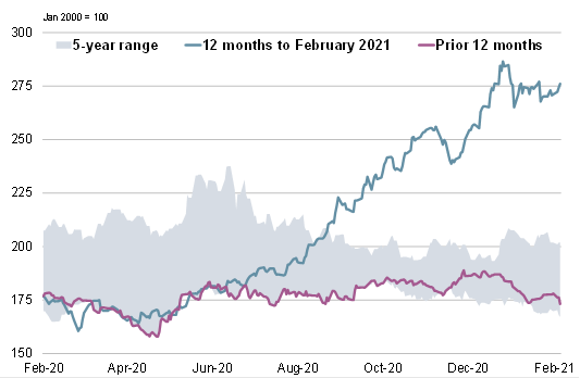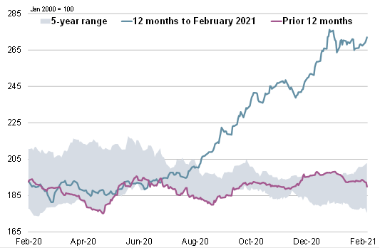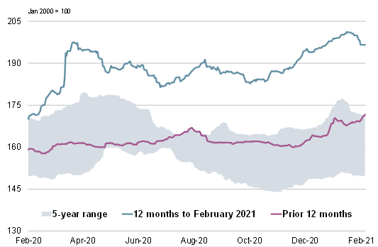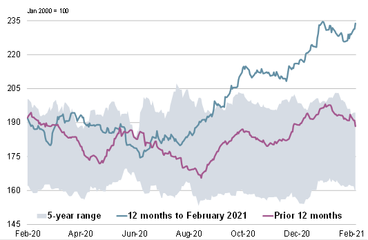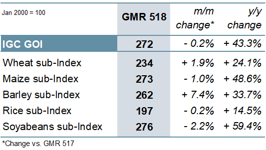 В связи с повышением средних цен на пшеницу и ячмень, но незначительным ослаблением рынков пропашных культур после продолжительного ралли, индекс IGC GOI в целом не изменился по сравнению с январским отчетом.